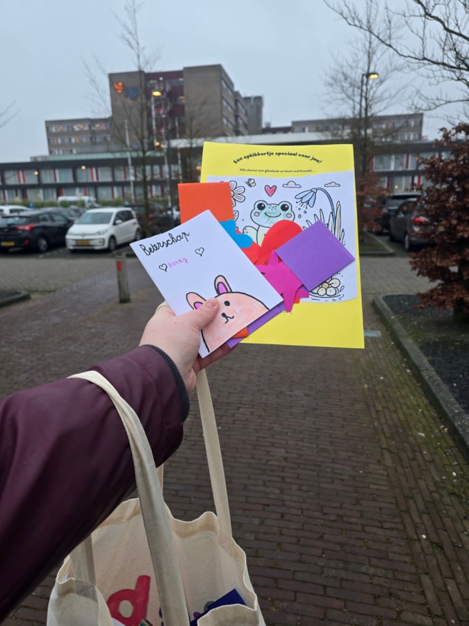 Dit jaar waren er veel stemmen voor 4 februari: Wereldkankerdag. De leerlingenraad kwam met het idee om een flessenactie te houden om wat geld in te zamelen voor het KWF. Daarnaast wilden ze ook dat alle leerlingen in school een tekening (bij de kleuters) of een kaart (groepen 3 t/m 8) maakten voor patiënten van de oncologie afdeling van het ZGT in Almelo. De tekeningen en kaarten zijn naar het ZGT gebracht. Later kregen we verschillende mailtjes en foto's van mensen die echt geraakt waren door de tekeningen en kaartjes die ze hadden gekregen als bemoediging.
